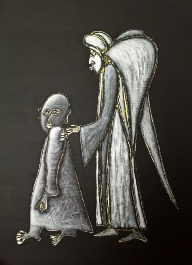 Tröstender Engel, 2013, Mischtechnik auf Leinwand, 50 x 70 cm
