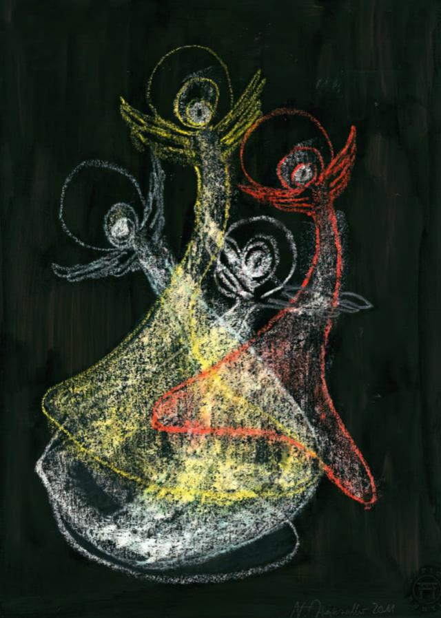Drei Engel 2, 2011, Mischtechnik, 32,5 x 25,5 cm